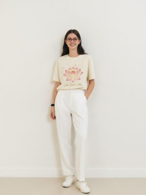 Terry Mid Rise Bowknot Elastic Waist Wide Leg Trousers