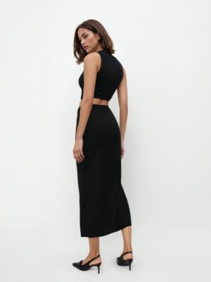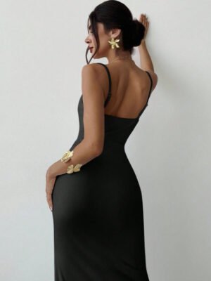 Women’s Black Sleeveless Bodycon Midi Dress – Elegant Slim Fit Party Dress