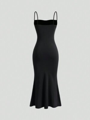 Women’s Black Backless Lace-Up Maxi Dress – Bodycon Mermaid Fit Party & Evening Gown