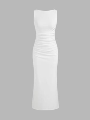 Set of 2: Ruched Tank Top & Knotted Ruched Split Maxi Skirt