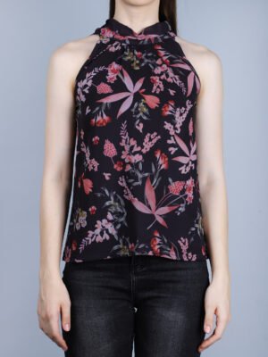 Black Sleeveless Bow Tie Shoulder Tank Top