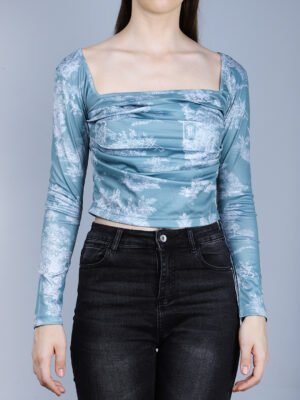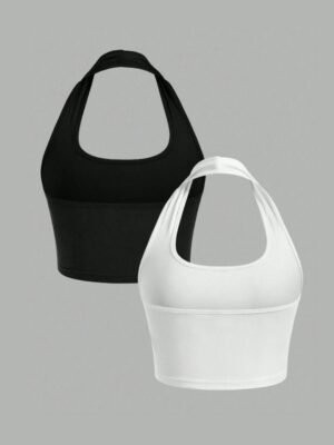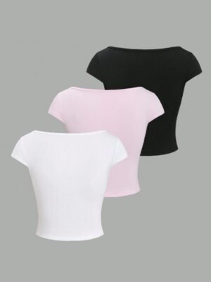 Pack Of 2 : Solid Ruched Square Neck Crop Top