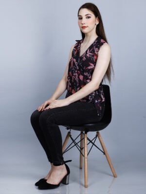 Women’s Black Sweetheart Neck Ruched Front Crop Top – Chic Cap Sleeve Slim Fit Tee