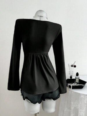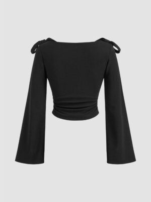 Black Sweetheart Neck Ruched Top with Flare Sleeves