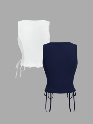 Pack Of 2: Round Neck Solid Ruched Crop Tank Top