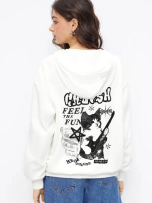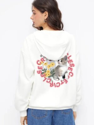 Cat Graphic Hoodie Oversized Hoodie white