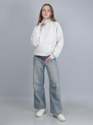 White Cropped Zip-Up Hoodie for Women