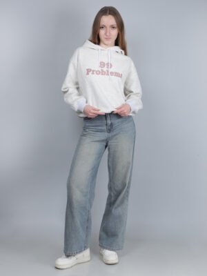Beige Graphic Printed Hoodie for Women – 99 Problems